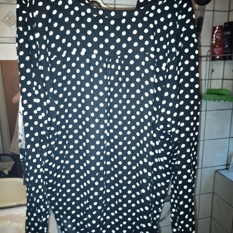 Sort bluse med lange ærmer. Der er blonder i ærmerne.