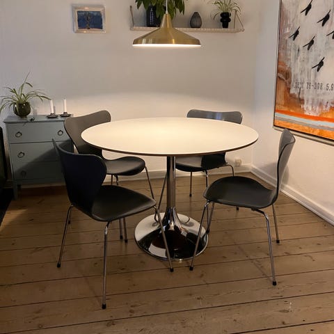 Fint rundt køkkenbord. Trænger til en slibning på bordplade deraf prisen.