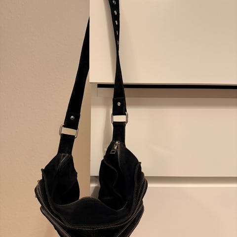 Den har aldrig været i brug. Núnoo gør på deres hjemmeside opmærksom på, at der godt kan være overskudsfarve i deres ruskindstasker, som kan smitte af på lysere tøj. Da den aldrig har været brugt, vil jeg også gøre opmærksom på det for denne taske.