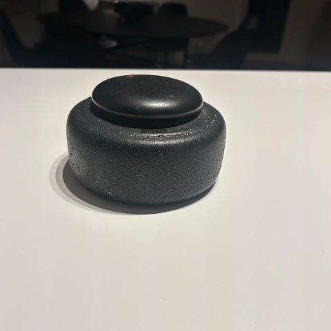 krukke med låg højde ca 6 cm dia ved låg ca 6 cm