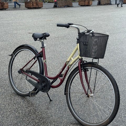 Fod og håndbremser, kurv foran, støttefod, reflekser mm.