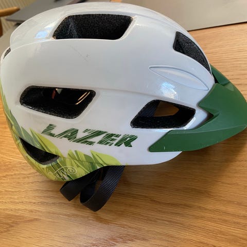 Let og sikker børnehjelm fra Lazer med indbygget Kineticore-beskyttelse. God pasform og i pæn stand. Passer hovedstørrelse 50–56 cm.