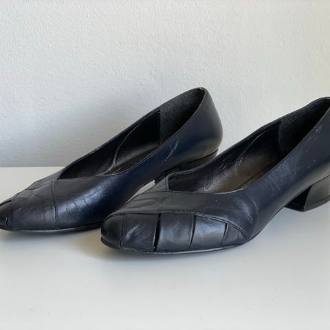 Et par sorte pumps fra mærket depeche, størrelse 38. Skoene har en spids tå og en mellemhøj hæl, hvilket gør dem velegnede til både formelle og uformelle anledninger. Indersiden er beige og har depeche-logoet trykt på sålen. Skoene viser lette tegn på brug, men er stadig i god stand.