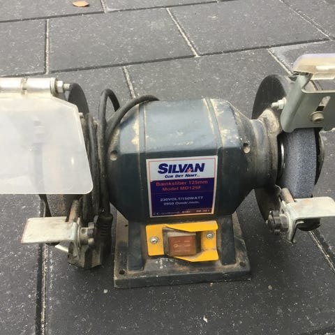 Det er en rektangulær slibesten med en størrelse på 15x5 cm. Slibestenen har en grå overflade på den ene side og en mørkere blå nuance på den anden, hvilket gør den velegnet til forskellige typer slibning.