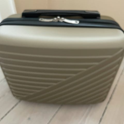 Helt ny lille kuffert til at sætte på trolley. Farve er champagne