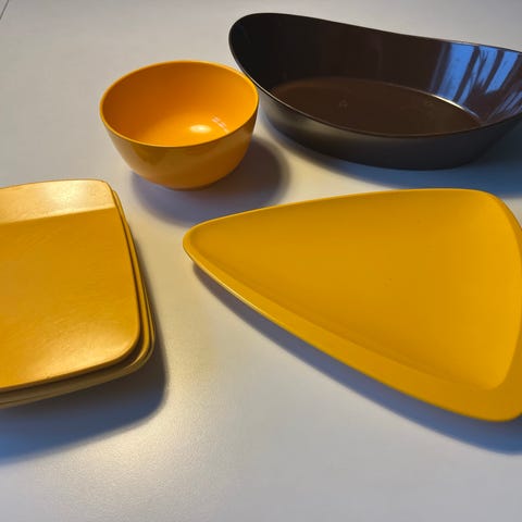 Smukke farver i gul plast og blå plast.