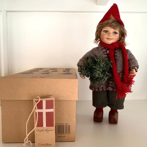 28 cm Birgitte Frigast Nisse pige med strikke kurv.