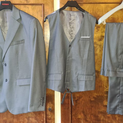 Vestene er i hhv. blå, mørkegrå og brun farve, med seks knapper foran, ingen stramme-rem bagpå og med lette striber tern på forsiden.