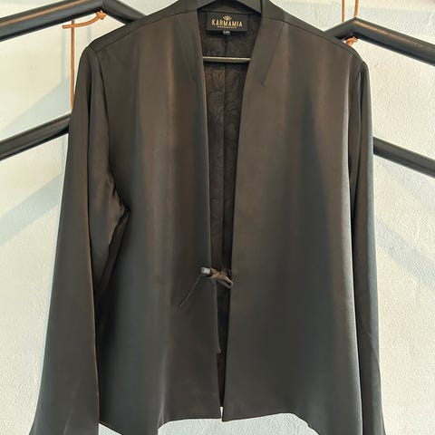 Karmamia Kaia jakke s/ m i antik hvid. Jake har bindebånd, ingen lommer og med hvidt foer. Ingen synlige brugsspor og brugt enkelt gang