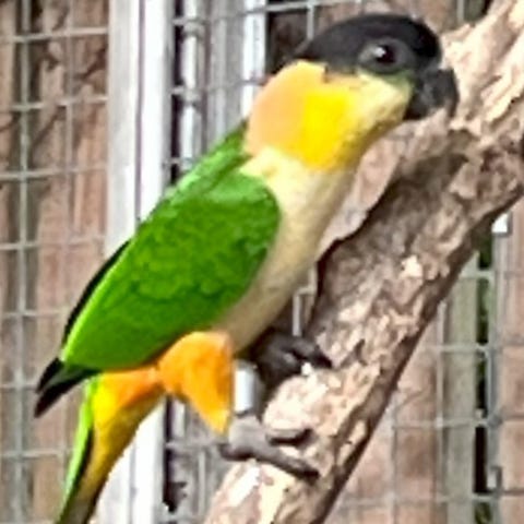 Sortcappet Caique, Han fra Juni 25, testet og fastringet, volierefugl, så ikke tam