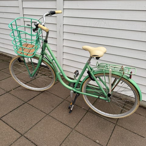 Brugt 3 gange. Nu købt en el cykel og kommer ikke til at bruge denne. Står som ny, men fået en rids under transport fra butikken og hjem. Med kurv.
