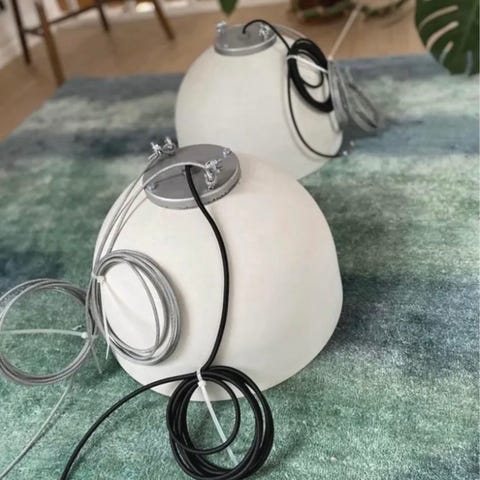 Flot, velholdt, med 2m hvid stofledning og special LED pære på 9,5W for optimal og ensartet lysfordeling til netop denne lampetype medfølger!