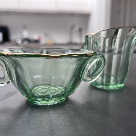 Glas, Sukkerskål kandisskål fad, classic chromium plate, Sølvlignende metal mes blå glasindsatser der kan tages ud.