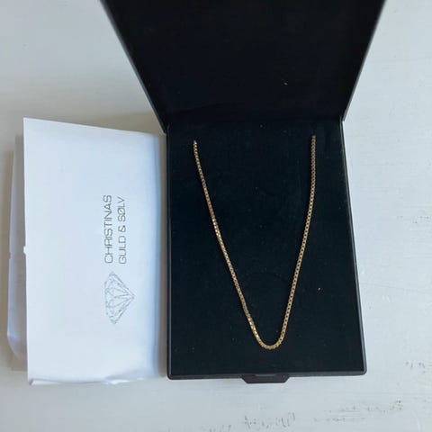 Smukkeste Brilliant i fin enkel guldkæde og beslag af 14 karat. Kæden måler 45 cm.