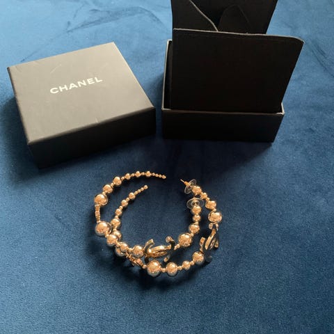 Helt nye Chanel øreringe i guld med ikonisk dobbelt C-logo dekoreret med små krystaller.