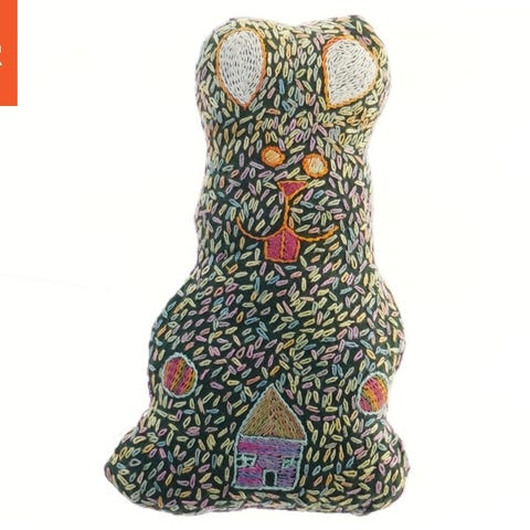 Skal rammes ind (der er et foto af et indrammet billede, så man kan se, hvordan de kan se ud). Eller man kan sy stof omkring og bruge motivet til en pude.