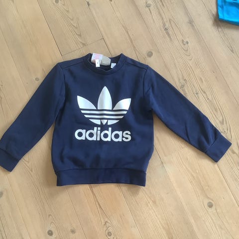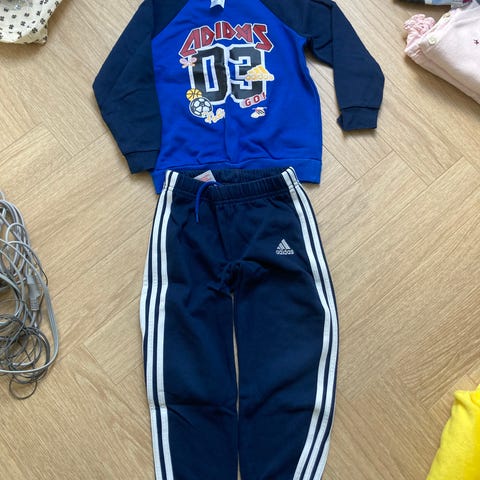 Fint sæt fra adidas i hvid og blå - størrelse 3 som jeg vurderer ca er en 56. Fra røg og parfumefrit hjem.