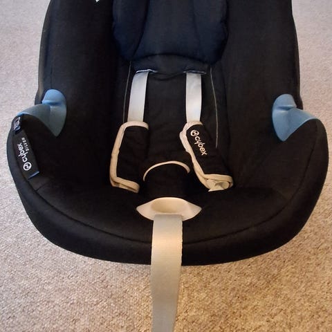 CYBEX Aton B2 autostol til baby med en maksimal vægtkapacitet på 13 kg. Autostolen er designet til at give sikker transport til spædbørn og små babyer. Farven er sort med turkise detaljer, og den har en bærbar håndtag for nem transport. Autostolen kan monteres i bilens base for ekstra stabilitet.