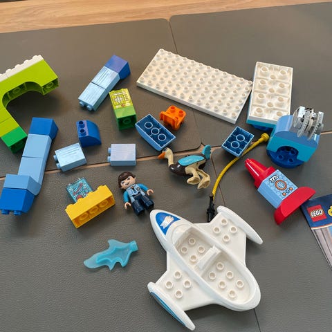 LEGO DUPLO Disney Planes byggesæt med forskellige farvede byggeklodser og figurer fra Disney Planes. Indeholder fly og tilhørende elementer til leg og konstruktion.