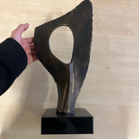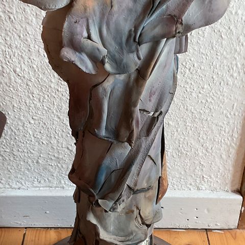 Skulpturen måler cirka 42 cm i højden og har en glat overflade.