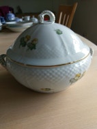 1 suppe terrin - lille hak i låg - omkreds indvendig 20 cm