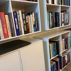 Reol med vitriner og skuffer - Hvid - Længde: 312 cm