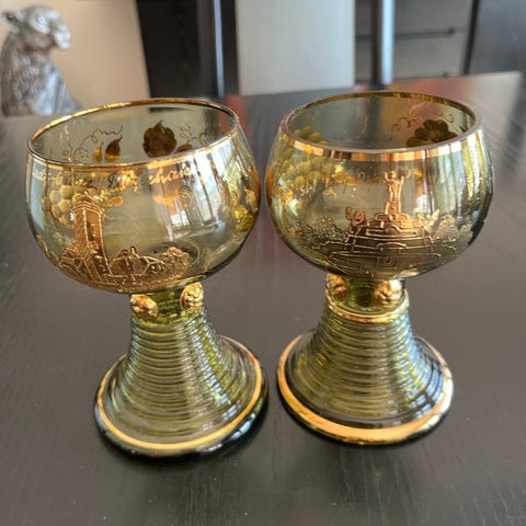 2 Flotte glas med våbenskjolde, og guldkant foroven.