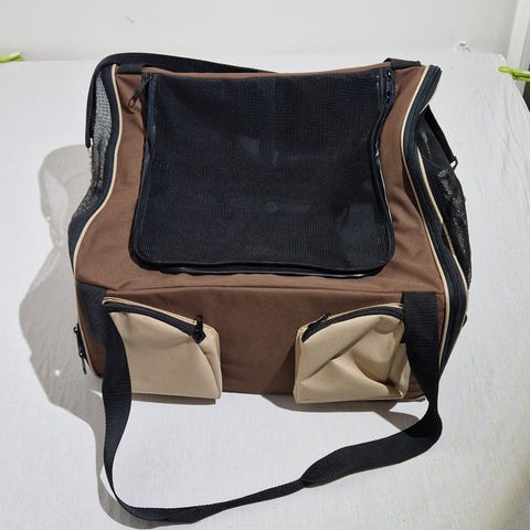 Ollipet transporttaske til kæledyr i sort. Str M - 60x42x42. Tasken har netvinduer på siderne og i toppen for ventilation og et blødt underlag indvendigt. Den har bærehåndtag og skulderrem for nem transport. Brugt som den “trygge base” fra start / brugt “åben” - men placeret i større aflukke. Brugstegn på 2 sider af net.