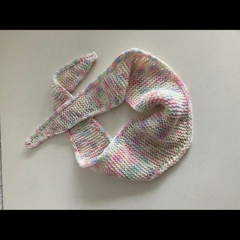 En tråd kidsilk og en merino, bystrikk oppskrift, totallengde 127 cm ca.