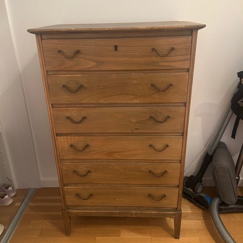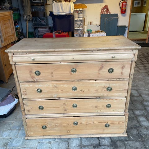Retro kommode fra 70erne med skuffer hvor der er meget plads i og med påsat massive ben , flot og velholdt