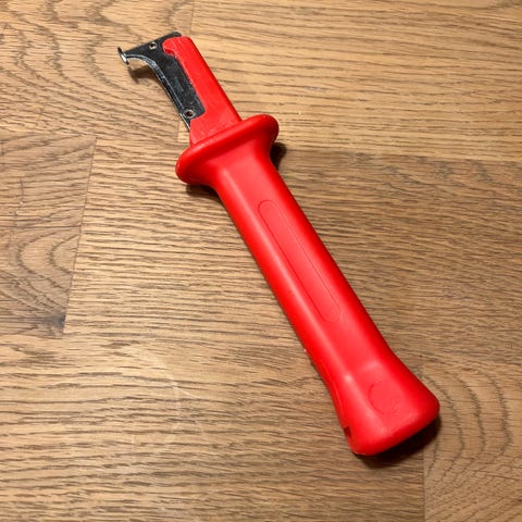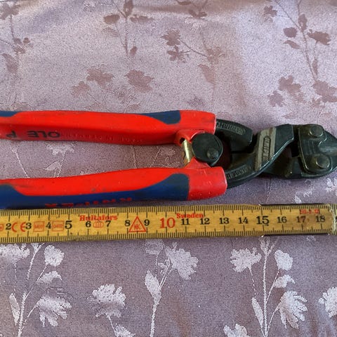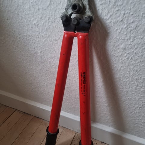 Knipex 95 02 160 kabelskærer med røde håndtag. Værktøjet er designet til at skære kabler og ledninger. Fremstillet i robust metal med isolerede håndtag for bedre greb.