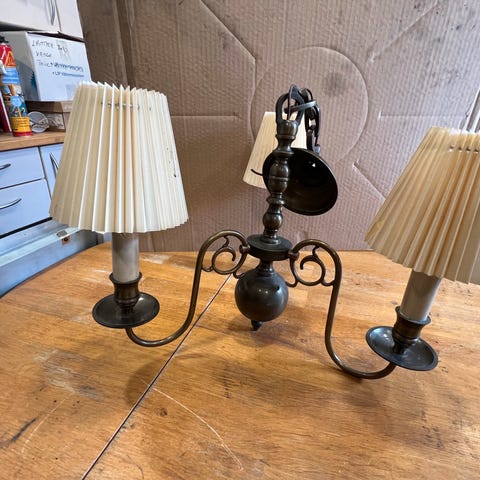 Flot velholdt og helt igennem brugbar Theis lysekrone i krom med 12 pærer, kan tilsluttes lysdæmper. Højde1 m og brede 64 cm. Skal afhentes .