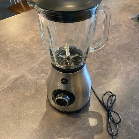 OBH Nordica blender med to beholdere i plast og medfølgende låg. Udover at kunne blende, kan den også knuse is og så har den vakuumindstilling. Materialet er hovedsageligt rustfrit stål og plast. Kun brugt få gange. Nypris 999,00 kr.