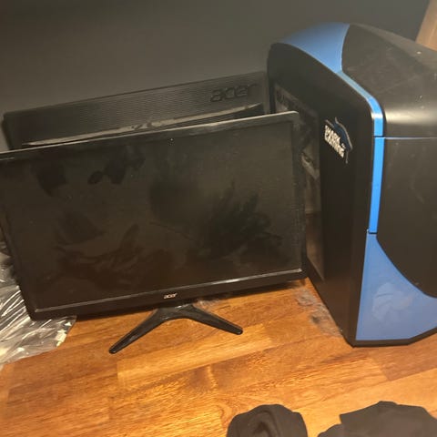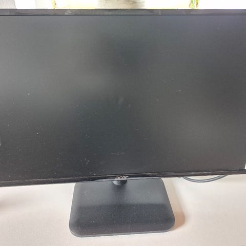 Acer 24" skærm med sort kabinet og rød/sort stander. Købt oktober 2017. Ny pris 2.623,20 kr.