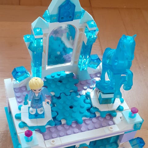 Elsas smykkeskrin fra Frozen 2. Med Elsa og hesten. To fingerringe og diamanter. Sjovt at bygge og lege med. Omhyggeligt sorteret i poserne, så det er klar til at bygge efter vejledningen. Samtlige klodser er der inkl lidt ekstra.