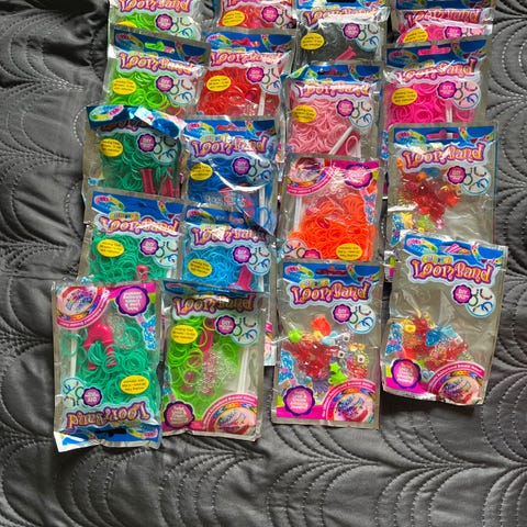 Loops/looms sæt med 12 forskellige farver. Indeholder silikonebånd til fremstilling af armbånd og andre smykker.