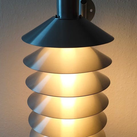 Design Jørgen Gammelgård. Fungerer perfekt. Ny 3 m hvid stofledning isat.