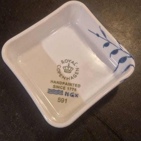 Royal Copenhagen oplukker, Musselmalet, med Carlsberg logo. 1. Sortering