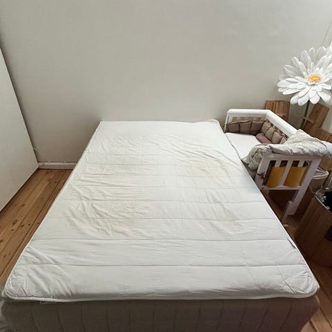 Sengen er 1 år gammel og så god som ny. Madrassen er 2 år gammel og i god kvalitet.