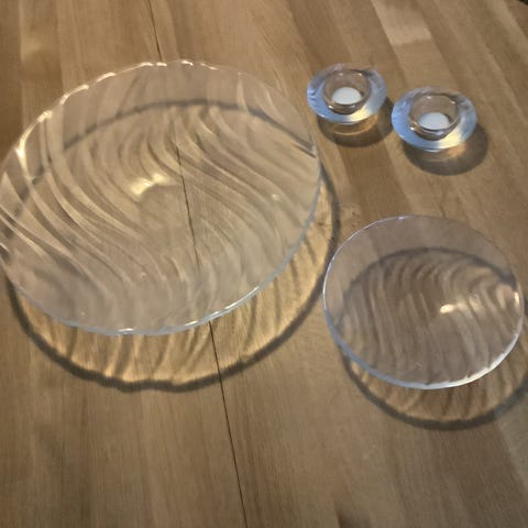 Smukt glasfad fra Holmegaard. 41,5 cm i diameter og 6,5 cm.