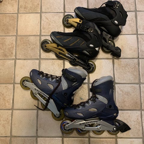 Rulleskøjter og stativ