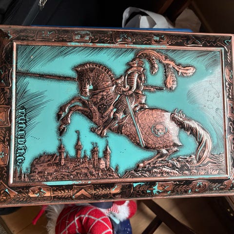 Tejn æske antik, mål: højde: 18,5 12,8 cm. Længde: 34,5 cm. Dybde: 13,5 cm.