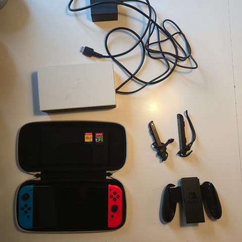 Strips til joy cons og grip til joy cons er i kassen har aldrig været brugt.