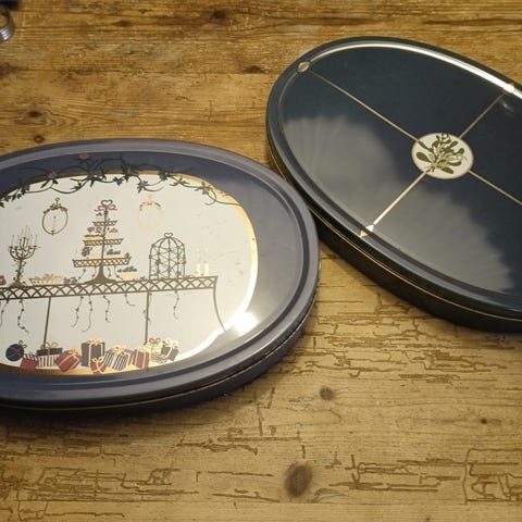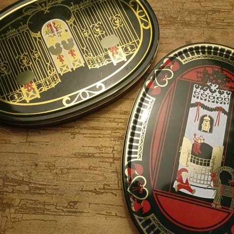 Fine kagedåser fra Royal Copenhagen med julemotiver tegnet af Jette Frölich.