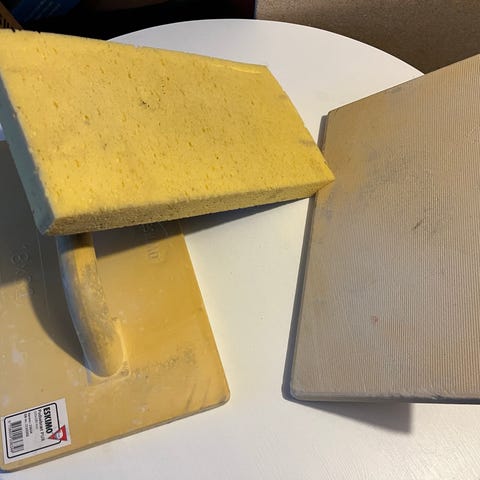 7 stk. pudseskum i størrelsen 24 × 18 cm × 20 mm til pudsebræt. Det er de klassiske hvide skumplader til pudsebrættet, der er lim på bagsiden med en film på, klar til pålimning.