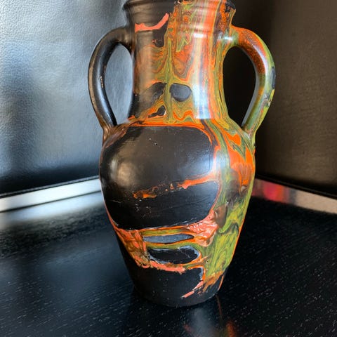 Jeg har selv håndmalet krukken. Upcycling af ældre krukke. Prisen er for et stk 30 cm høj. Jeg har 2 stk.