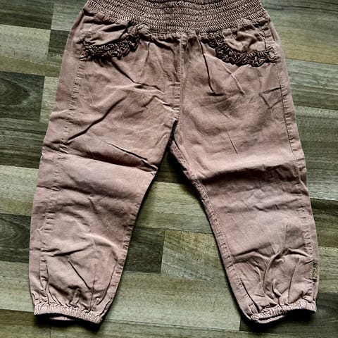 Hust & Claire bukser i størrelse 92 til børn, unisex design. Bukserne er lavet af jersey materiale og har en brun farve.