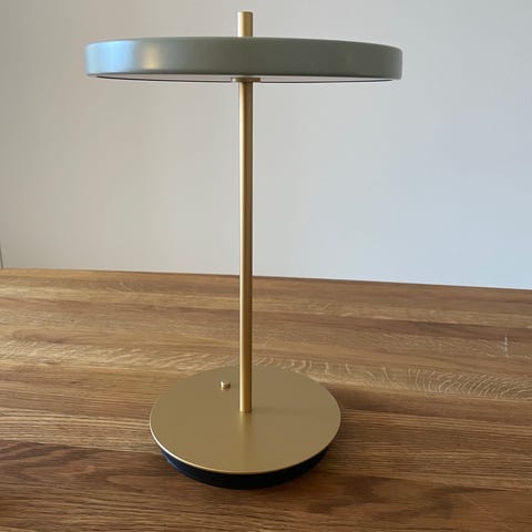 trådløs lampe fra UMAGE. Den har 3 forskellige lysstyrker. Virker i 168 timer på laveste lysstyrke og 10 timer pr. højeste lysstyrke.