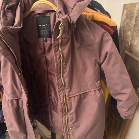 Sød, lidt længere jakke med aftagelig hætte. Mange gode detaljer.
