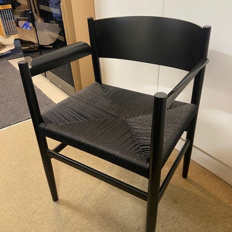 Mater Nestor Sidechair Armrest - Black Beech/Natural Paper Cord Seat